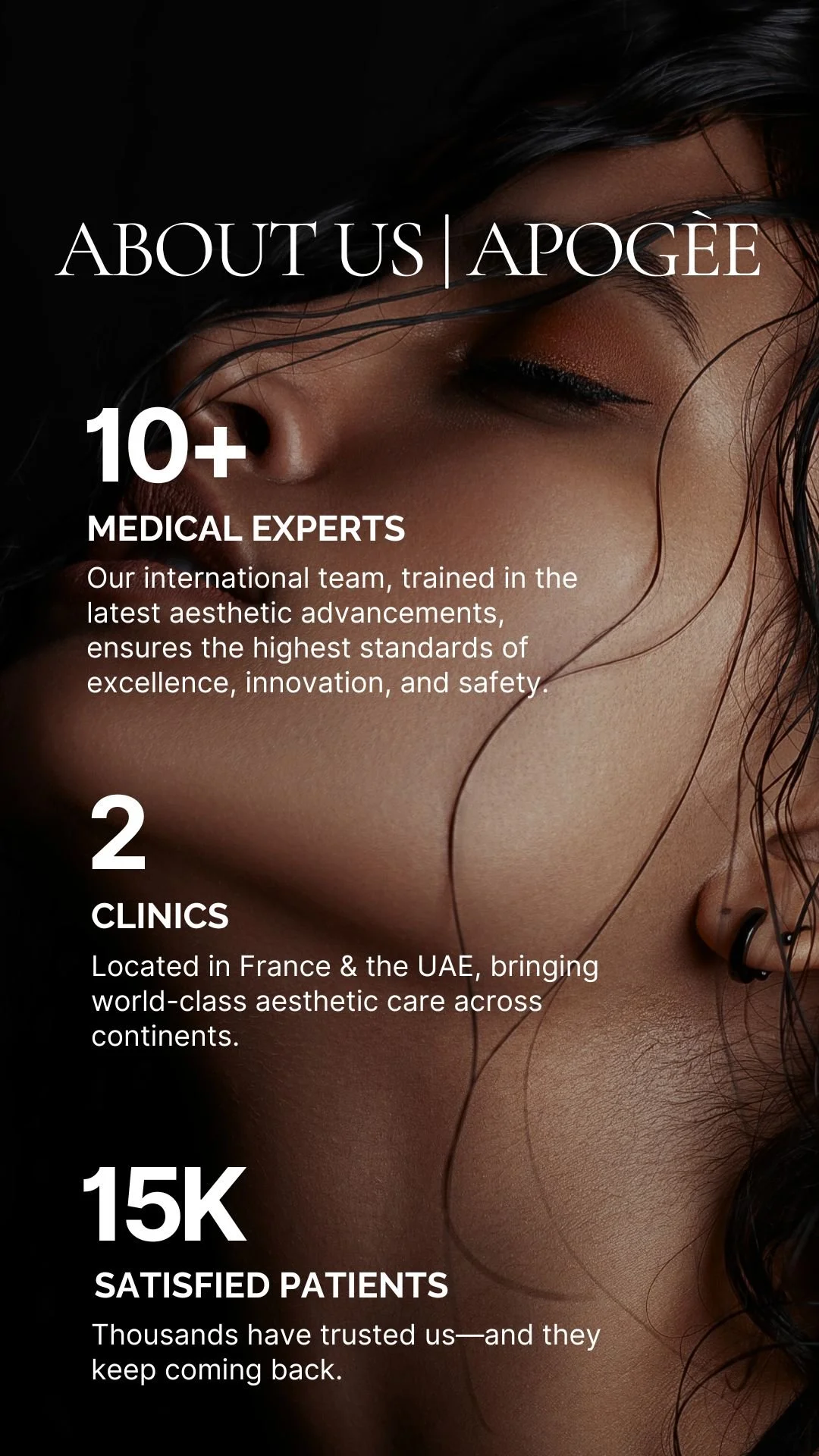 Apogee Clinic is a modern aesthetic clinic that arrived in Dubai straight from Paris, offering advanced skincare procedures, high-end technology, and a premium European approach to beauty.